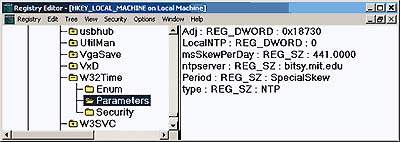 | Экран 2. Параметры реестра для службы W32Time. |
