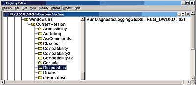 Сначала нужно запустить редактор реестра, перейти в раздел HKEY_LOCAL_MACHINESOFTWARE MicrosoftWindows NT CurrentVersion и ввести новый раздел Diagnostics (по умолчанию в реестр он не вносится). Получив соответствующее приглашение, поле класса раздела следует оставить незаполненным. В раздел Diagnostics можно поместить четыре параметра. Один дает системе Windows 2000 команду регистрировать все действия пользователя, связанные с окружением, другой - только события, имеющие отношение к групповой политике, третий - фиксировать действия, связанные с дистанционной загрузкой, и четвертый предписывает операционной системе ограничиться регистрацией событий, касающихся управления прикладными программами.