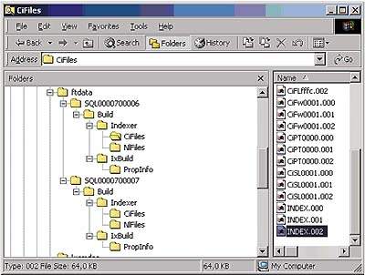 Списки незначащих слов хранятся в Program FilesMicrosoft SQL Server MSSQLFTDATAConfig под именами Noise. Расширение файла соответствует названию языка. Списки можно редактировать как обычные текстовые файлы. Имя папки файловой системы, содержащей полнотекстовый каталог, соответствует уникальному идентификатору полнотекстового каталога. Путь к каталогу можно найти в таблице sysfulltextcatalogs. Структура папок в полнотекстовом каталоге имеет стандартный вид (см. Экран 2). Для временных файлов используется папка С:WINNTTEMPgthrsvc.
