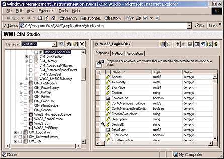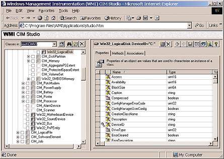 Классы CIM и Win32 можно просмотреть с помощью комплекта инструментальных средств разработки SDK WMI. Его можно загрузить по адресу: http://www.msdn.microsoft.com/downloads/ sdks/wmi/download.asp. Размер файла весьма велик - 8 Мбайт.