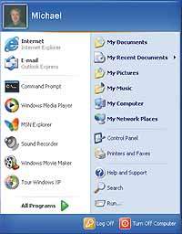Для новой операционной системы в Microsoft разработан пользовательский интерфейс (неофициальное название — Luna), позволяющий новичкам без труда выполнять наиболее общие задачи. Однако опытных пользователей Windows 2000 или NT 4.0 новый интерфейс, вероятно, может раздражать. Местоположение ряда привычных объектов (например, Administrative Tools и значка My Computer) изменилось. Кроме того, новый интерфейс по сравнению со своими предшественниками для выполнения тех же задач требует больше манипуляций с мышью и перемещений по различным экранам. Тем не менее «картинка», в общем-то, изменилась мало. Пользователи, работавшие в Windows 2000, Windows Me и Windows 98, должны быстро привыкнуть к новому интерфейсу. Он более лаконичен: по умолчанию на рабочем столе отображается только один значок — Recycle Bin. Графические значки стали больше по размеру, меню Start переработано, а фоном по умолчанию служит подложка в мягких голубых тонах (меню Start представлено на Экране 1).