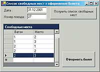 | Экран 1. Форма «Cписок свободных мест и оформление билета». |