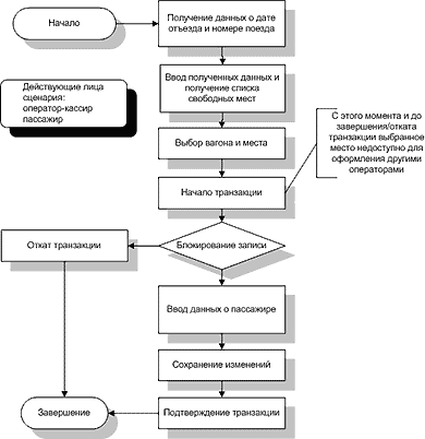 На Рисунке 1 приведен сценарий работы приложения покупки/продажи железнодорожного билета.