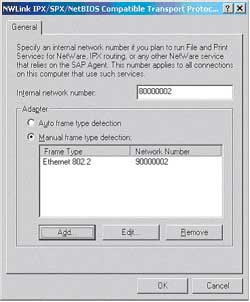 Для настройки маршрутизации протокола IPX потребуется активизировать службу RRAS, предварительно установив NWlink IPX/SPX/NetBIOS Compatible Transport Protocol на сервере Windows 2000. Далее необходимо произвести настройку этого протокола для каждой подсети. Для любого из сетевых адаптеров сервера открываем окно свойств Properties протокола NWlink и вводим номер внутренней сети (он будет один и тот же для обоих адаптеров, и его можно задать произвольно, главное, чтобы он был уникален в вашей локальной сети и состоял из восьми цифр в шестнадцетиричной системе). Внутренний номер подсети в IPX играет примерно ту же роль, что и адрес 127.0.0.0 в IP, и необходим для внутренней маршрутизации между сетевыми картами и работы различных служб.
