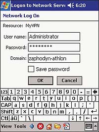 В Pocket PC 2002 наконец появились встроенные функции VPN на базе PPTP. Нужно указать на пункты меню Start, Settings и выбрать закладку Connections. Чтобы вызвать на экран диалоговое окно Connection Settings, следует дотронуться до пиктограммы Connections. Выбрав пункт The Internet в поле My network card connects, можно указать устройству на сетевое соединение. После этого следует выбрать пункт Modify (в разделе Work Settings) и закладку VPN. Чтобы создать новое VPN-соединение, достаточно указать на пункт New и выбрать имя соединения и имя хост-машины или IP-адрес VPN-сервера. После этого можно просматривать разделяемые сетевые ресурсы с помощью File Browser или Pocket IE. При необходимости устройство автоматически устанавливает VPN-соединение - на экране появляется запрос пароля и имени пользователя.