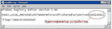 Ну и, наконец, при желании, запрет и разрешение приема звонков в Microsoft Shared Fax можно реализовать не на уровне службы, а на уровне отдельного устройства (факс-модема). Пример .reg-файла (разрешающего) приведен на Экране 3.