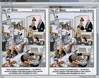 - можно прятать данные в изображениях и аудиофайлах, размещенных в Internet или передаваемых по электронной почте. Этот способ стеганографии часто используют вкупе с обычным шифрованием для обеспечения большей приватности. Не в меру любопытным придется сперва отыскать файлы с зашифрованной информацией (непростая задача), а уже потом пытаться сломать код.