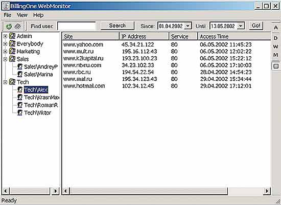Просмотр свойств пользователя и статистики по трафику и времени работы в Internet.