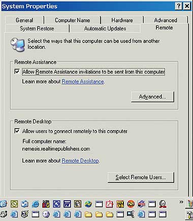 Как и в случае с Remote Assistance, для организации среды управления, подобной терминальным службам, в Remote Desktop используется протокол Microsoft RDP. Конечно, Remote Desktop можно применять для поддержки пользователя XP, но в первую очередь он предназначен для удаленного доступа пользователей XP к собственным системам — например, сотрудник, работающий дома, может обратиться к компьютеру в офисе, а служащий офиса — к домашнему компьютеру.