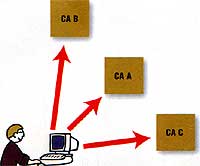 Центр сертификации (Certification Authority, CA) от Microsoft, впервые появившийся в составе пакета Windows NT 4.0 Option Pack, все еще остается для многих администраторов основным средством создания сертификатов для Secure Sockets Layer (SSL). Дальнейшее развитие служба CA получила в Windows 2000, использующей Active Directory и обеспечивающей лучшую масштабируемость, интеграционные возможности и поддержку многоуровневых иерархий PKI. Однако и в CA Windows 2000 отсутствуют такие важные функции, как избирательное администрирование PKI (например, делегирование администратору права санкционировать выдачу сертификатов только определенной группе пользователей), дополнительные возможности конфигурирования сертификатов и CA (например, изменение формата сертификата или развитые возможности аудита CA), а также средства для быстрого создания собственных PKI-приложений для расширения платформы PKI. Из-за этих недостатков компании могут отказаться от внедрения PKI на базе Windows.