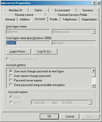 Многие администраторы ошибочно полагают, что право User Account Control покрывает также два первых свойства в списке Account options. Первое свойство — User must change password at next logon — является правом, которое администраторы часто делегируют сотрудникам службы технической поддержки одновременно с правом разблокировать учетные записи пользователя и менять пароли. Обладая этими правами, сотрудники службы технической поддержки могут помочь пользователям снова получить доступ к своим учетным записям после того, как те сами себя заблокировали в результате неумелой смены пароля. Принуждение пользователей к смене паролей при очередном подключении дает гарантию, что сотрудники службы технической поддержки не будут в дальнейшем знать пароли этих пользователей.