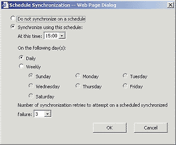 После настройки основных параметров необходимо наладить синхронизацию сервера с сервером Microsoft Windows Update или локальным сервером SUS (страница Synchronize Server). Синхронизация может выполняться автоматически, в заранее заданное время (см. Экран 3) или вручную (кнопка Synchronize New).