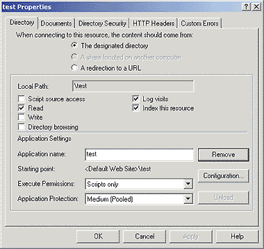 Для начала проведем маленький эксперимент — попробуем создать в корневом каталоге IIS (по умолчанию это c:inetpubwwwroot) каталог test, затем войдем в консоль Internet Information Services и создадим для каталога test-приложение (см. Экран 1).