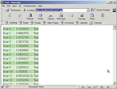 Текст этого файла специально написан так, чтобы мы получили выходной файл большого размера. Загружаем в браузере написанный test1.asp. Кажется, ничего особенного не происходит — мы видим обычную таблицу длиной 2000 строк (см. Экран 3).