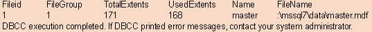 Пример вывода команды DBCC SHOWFILESTSTS.