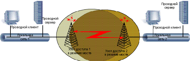 Узлы доступа в роли беспроводного моста, связывающего несколько локальных сетей.