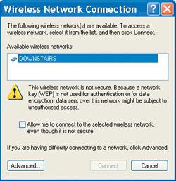 Сотрудникам ИТ-отделов будет приятно узнать, что, хотя разработчики Microsoft не занимались усовершенствованием сетевых средств операционной системы XP Tablet PC Edition, планшетные компьютеры наделены всеми полезными функциями, реализованными в XP Pro. Одно из самых полезных средств — совместимый с протоколами беспроводной связи сетевой стек, обеспечивающий соответствующий интерфейс для идентификации и подключения к имеющимся беспроводным сетям. Я пришел к выводу, что TravelMate можно с успехом использовать в качестве портативного тестера средств связи стандарта 802.11. Система удобна для переноски, а диалоговое окно Wireless Network Connection, показанное на Экране 3, позволяет определять, какие сети доступны в той или иной точке. Кроме того, планшетные компьютеры унаследовали реализованную в Windows XP функцию Network Bridge, которая автоматически использует все имеющиеся сетевые соединения, как проводные, так и беспроводные.