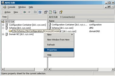 Модификация списка управления доступом. Для внесения изменений в список управления доступом члены группы Schema Admins могут воспользоваться оснасткой ADSI Edit консоли Microsoft Management Console (MMC). По умолчанию члены групп Enterprise Admins и Domain Admins необходимыми правами на внесение изменений в контейнер Schema не наделяются.