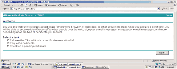 Экран 1. Страница приветствия Web-сайта выдачи сертификатов (CA).