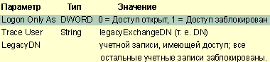 | Таблица 2. Параметры реестра для блокировки доступа в Exchange 2000. |