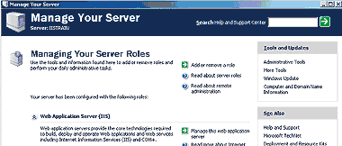 Новшества Windows 2003/IIS 6.0 дают о себе знать сразу после установки Windows 2003. Одно из важнейших отличий заключается в том, что IIS не устанавливается по умолчанию ни в одной версии Windows 2003, за исключением Windows 2003 Web Edition. Таким образом, компания отказывается от развертывания операционной системы вместе со службой IIS, активированной для многих Web-приложений. Установить IIS можно одним из трех способов: с помощью мастера Manage Your Server Wizard, с использованием утилиты панели управления Add/Remove Windows Components или выполнив автоматическую процедуру без участия оператора.