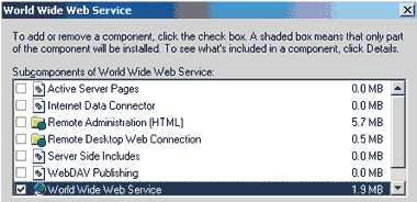 Если внимательно взглянуть на элементы IIS 6.0, станет ясно, что отсутствует диспетчер Internet Services Manager (ISM), известный также как Administration Web Site, создаваемый по умолчанию в IIS 5.0 и IIS 4.0. Но если щелкнуть на World Wide Web Service (один из элементов IIS 6.0, не показанный на Экране 2), а затем на кнопке Details, то можно увидеть, что в World Wide Web Service версии IIS 6.0 присутствуют элементы, показанные на Экране 3.