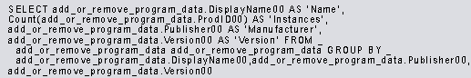 Листинг 3. Запрос SMS SQL для получения данных из таблиц Add/Remove Programs.