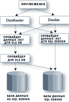 Visual Studio .NET содержит два поставщика данных .NET. Поставщик данных SQL Server .NET обеспечивает связь с SQL Server 7.0 и более поздними версиями. Этот метод доступа наиболее эффективен для SQL Server 7.0 и выше, потому что поставщик данных SQL Server .NET связывается напрямую с SQL Server через протокол Tabular Data Stream (TDS). Поставщик данных OLE DB .NET необходим для соединения с отличными от SQL Server базами данных, такими, как Oracle или IBM DB2. Этот поставщик данных использует OLE DB для соответствующих баз данных.