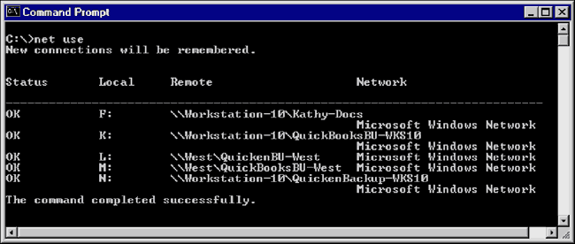 Экран 2. Чтобы узнать о текущем состоянии подключенных дисков, нужно выполнить команду net use без параметров.