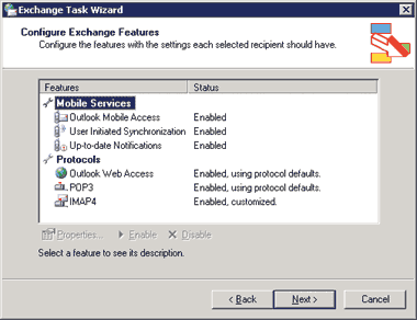 Учитывая широкое распространение мобильных вычислительных устройств, таких, как Pocket PC, корпорация Microsoft превратила систему Exchange 2003 в главный узел интеграции мобильных устройств. С точки зрения большинства пользователей таких устройств, наиболее важными их функциями являются возможность обмена почтовыми сообщениями, календари и списки контактов, поэтому неудивительно, что разработчики рассматривали совместимость Exchange с мобильными компьютерами в качестве одного из главных атрибутов системы. На Экране 2 показано, как при развертывании Exchange 2003 администратор может с помощью мастера Exchange Task Wizard, наряду с прочими средствами Exchange, конфигурировать настройки средств взаимодействия с мобильными устройствами.