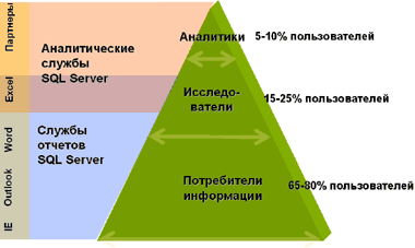 По мнению специалистов Microsoft, средства Business Intelligence будут применять от 70 до 90% пользователей.