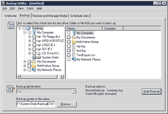 Экран 1. Создание резервной копии контроллера домена