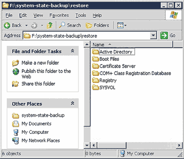 Я рекомендую восстанавливать данные на том накопителе, который планируется использовать для хранения базы данных каталога; это позволит заметно ускорить процесс создания нового DC. Преимущество данной стратегии в том, что в процессе повышения статуса сервера программе Dcpromo не придется копировать файлы с одного накопителя на другой; она просто перенесет их в нужное место. К тому же благодаря этой функции в ходе создания нового DC используется меньше дискового пространства.