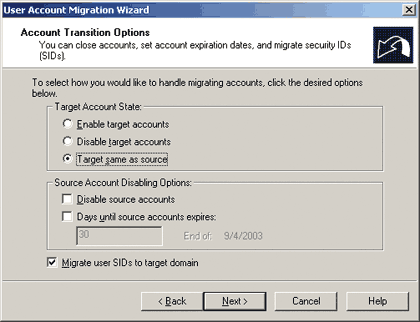 Экран 4. Параметры миграции учетной записи