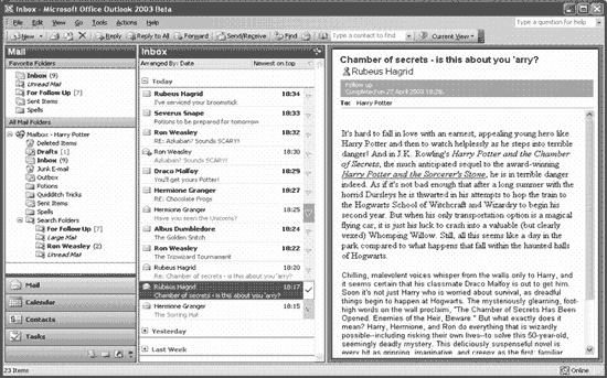 Экран 2. Пользовательский интерфейс бета-версии Microsoft Outlook 2003