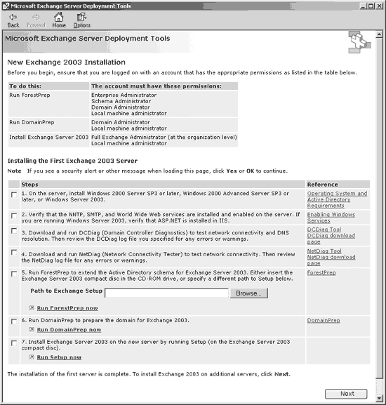 Экран 2. Установка первого сервера Exchange 2003