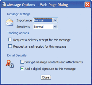 Чтобы предоставить пользователям OWA сертификаты S/MIME, можно задействовать корпоративную инфраструктуру PKI (Public Key Infrastructure) или сторонние сертификаты. После того как клиент OWA будет готов к работе с S/MIME, в интерфейсе OWA и свойствах сообщений будут показаны параметры для цифрового подписывания сообщений и шифрования их содержимого (см. экран 4). Особенность OWA S/MIME заключается в том, что все операции с сертификатами, в частности проверка отзывов сертификатов, выполняются на сервере Exchange 2003.