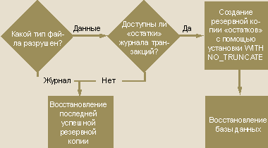 Во всех этих случаях изменения, отраженные в журнале транзакций к моменту сбоя (так называемые «остатки» журнала транзакций), не могут быть зарезервированы, и, следовательно, данные можно восстановить только на время выполнения последнего резервного копирования. Как результат — все изменения, произошедшие с момента резервного копирования, придется выполнить заново.