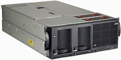 IBM eServer xSeries 445 масштабируется в 16-процессорный сервер при использовании процессоров Xeon processor MP, работающих с частотой от 2,0 до 2,8 ГГц; к концу 2003 г. компания IBM планирует выпустить 32-процессорные машины (xSeries 445 с процессором Xeon DP работает в двух- и четырехпроцессорных конфигурациях с частотами до 3 ГГц). Два взаимосвязанных блока образуют 16-процессорную систему. В корпус высотой 4U (18 см) можно установить два модуля SMP Expansion Modules, каждый из которых содержит до четырех процессоров. В машине применяется набор микросхем XA-32 второго поколения, совместимый с системной шиной на 400 МГц. В каждом корпусе имеется шесть гнезд PCI-X (по два гнезда на 66, 100 и 133 МГц). С помощью модуля расширения Remote I/O можно добавить еще шесть гнезд PCI-X (12 в 16-процессорном сервере). Каждый корпус располагает двумя жесткими дисками SCSI с горячей заменой и встроенным контроллером Ultra320 SCSI. Встроенный модуль RAID позволяет зеркально копировать диски.