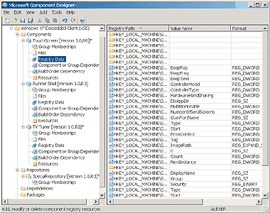 - Component or Group Dependences — как уже говорилось выше, корректная работа одних компонентов, как правило, зависит от наличия в системе других. Например, служба поддержки общих файлов (File sharing) не может работать без установленной сетевой инфраструктуры. В данном разделе указываются компоненты, наличие которых необходимо. Эта информация используется функцией Dependency Check в программе Target Designer;