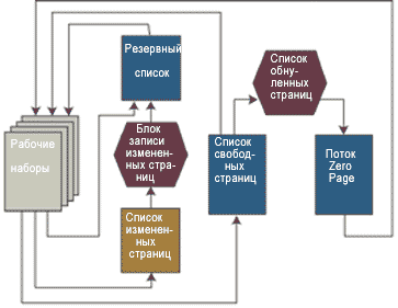 Ранее уже отмечалось, что Memory Manager выделяет страницу свободной физической памяти процессу, в котором произошла ошибка обращения к странице, но не было дано определение доступной памяти. Резервный список — часть физической памяти, которую Memory Manager рассматривает как доступную. Другие пулы, составляющие доступную память, — это страницы с данными освобожденной виртуальной памяти (например, страницы с данными, принадлежащими завершенным процессам) и страницы, освобожденные и впоследствии заполненные нулевыми данными низкоприоритетным потоком zero page диспетчера памяти. Страницы этих типов хранятся в списке свободных страниц и в списке обнуленных страниц Memory Manager соответственно.