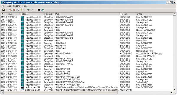 Экран 1. Пользовательский интерфейс утилиты RegMon