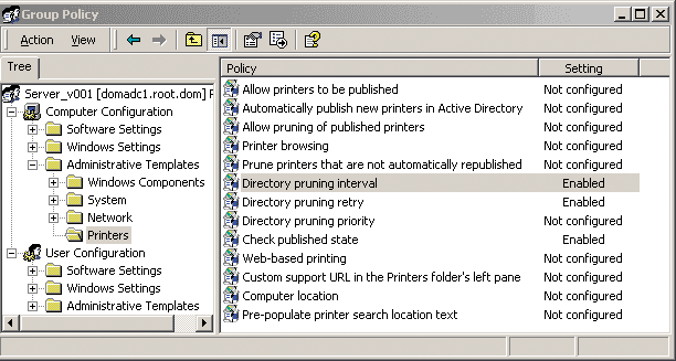 Параметры управления принтерами в групповой политике
