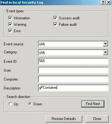 Таким образом, зная, где отыскать нужные сведения, можно получить точную информацию о происходящем в AD, или по крайней мере выявить причины неполадок. Необходимо активизировать режимы Audit account management и Audit directory service access в Default Domain Controllers Policy GPO, а для того, чтобы получить полную картину активности в домене, требуется проверить каждый домен. Удачи в анализе журнала Security!