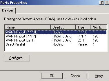 Щелкните на кнопке OK и перезапустите оснастку Routing and Remote Access. Правой кнопкой мыши нужно щелкнуть на папке Ports в окне этой оснастки и в контекстном меню выбрать пункт Properties. Откроется диалоговое окно Ports Properties, показанное на экране 4.