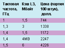 | Таблица 3. Цена процессоров Itanium 2 (Madison) |