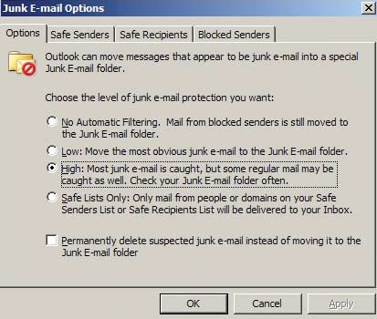 Экран 1. Параметры Junk E-mail Filter