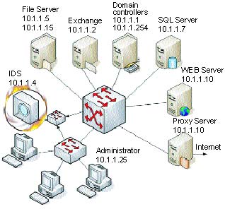 Следующим этапом является выбор метода, при помощи которого трафик сегмента будет передаваться NIDS. Поскольку сеть построена на основе коммутаторов, фреймы передаются непосредственно между получателем и отправителем пакета. Необходимо изменить пути прохождения пакетов таким образом, чтобы они попадали на сетевой интерфейс системы обнаружения атак. Для этого можно применять разветвители (tap), концентраторы и span-порты. Более подробно об этих методах рассказано в статье «Intrusion Detection FAQ» института SANS, переведенной А. В. Лукацким (http://www.infosec.ru/press/pub/p45.htm).