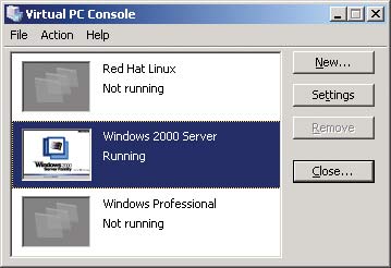 Официально Virtual PC поддерживает в качестве гостевых операционных систем только настольные продукты Microsoft и OS/2, но в действительности может работать с гораздо большим количеством гостевых операционных систем. Большинство операционных систем, совместимых с платформой x86, будут работать с Virtual PC в качестве гостевых ОС. Я успешно устанавливал таким образом Red Hat Linux и Windows 2000 Server. Однако Microsoft не поддерживает запуск серверных систем Windows и Linux в среде Virtual PC, поэтому я не рекомендую использовать Virtual PC для важных производственных приложений, работающих с этими операционными системами.
