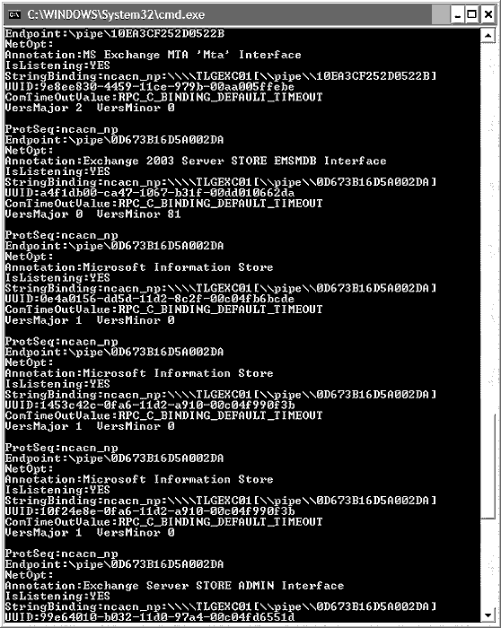 Экран 3. Результаты проверки служб Exchange командой Rpcdump